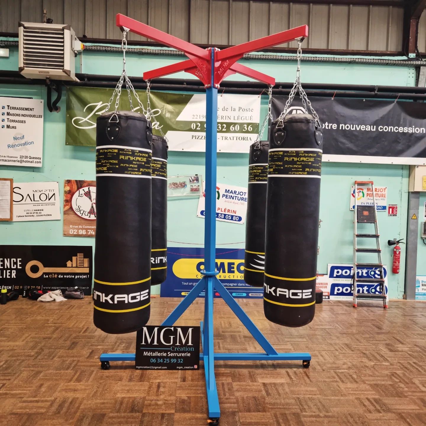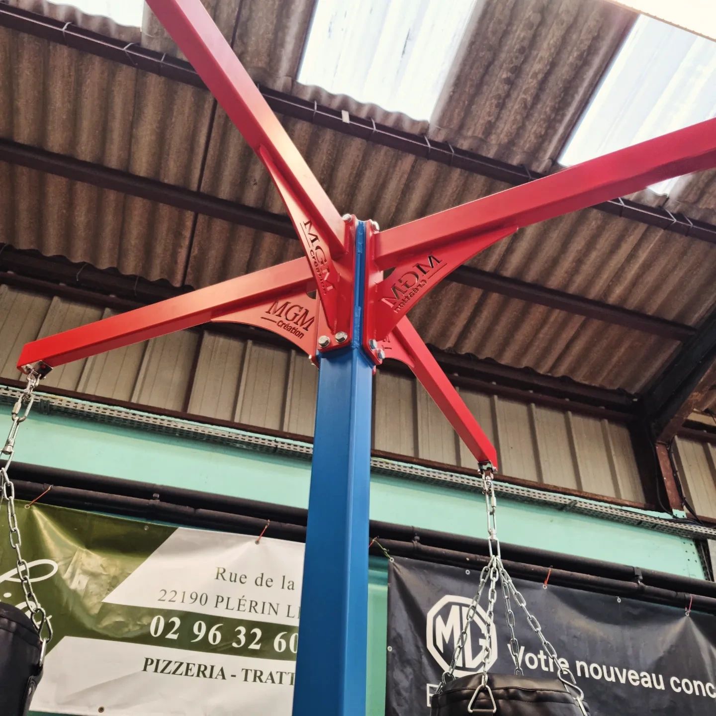 Notre nouvelle potence 4 bras spécialement conçue pour les sacs de boxe est désormais installée.